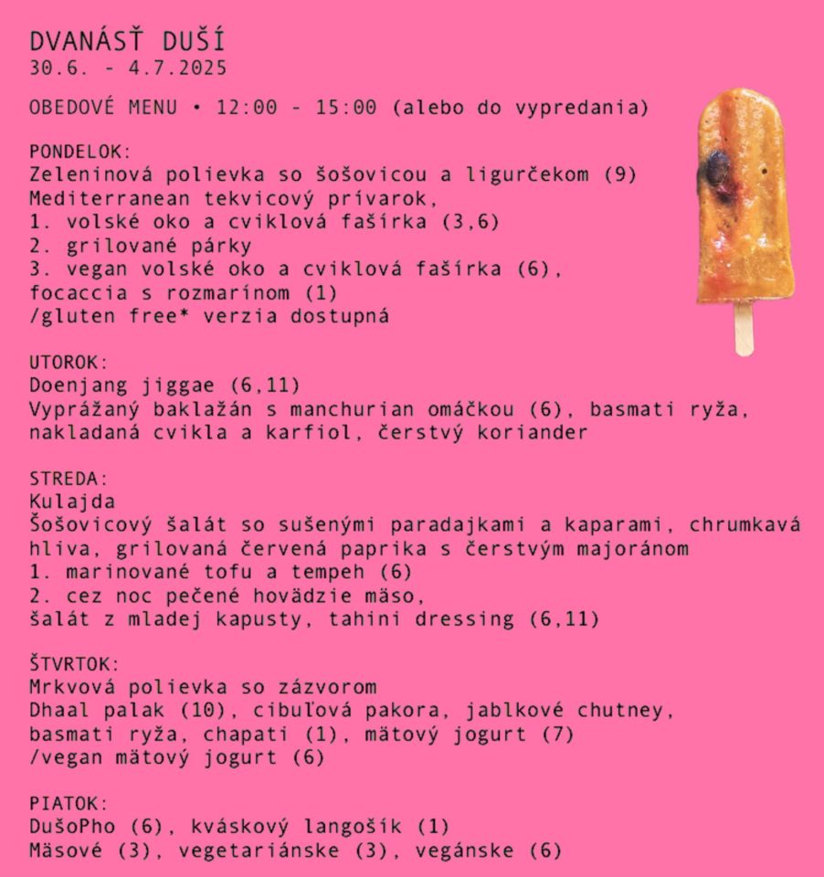 Obedové menu u dvanásť duší